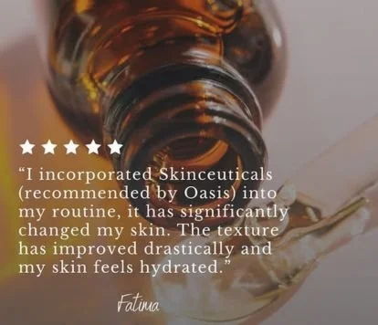 “I have been visiting Oasis Laser Skin Clinic for over 10 years and couldn’t be more pleased with Salima. She is knowledgeable and explains the process before the treatments, making you comfortable. I also use Skinceuticals products that I purchased from Salima and incorporated in my routine which has significantly changed my skin. The texture has improved drastically as well as my skin feels hydrated. I have been nervous of trying microneedling. Salima walked me through the process and I felt relieved. Can’t wait to see my skin transform. I appreciate the welcoming and friendly environment. I am delighted and highly recommend Oasis Laser Skin Clinic to anyone looking for laser services and