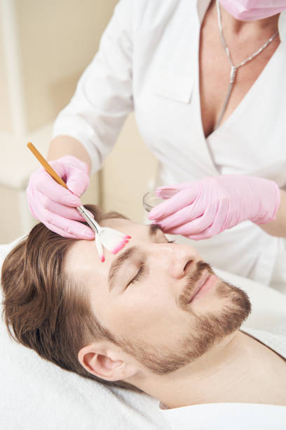 A medical-grade formula is applied to exfoliate and renew the skin.